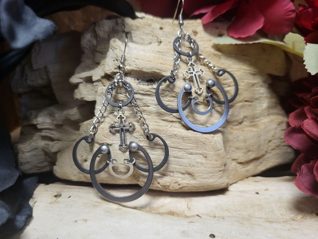 Lassés de la mécanique, les circlips se sont offert une seconde vie gothique — une rosace de métal où la croix devient bijou.